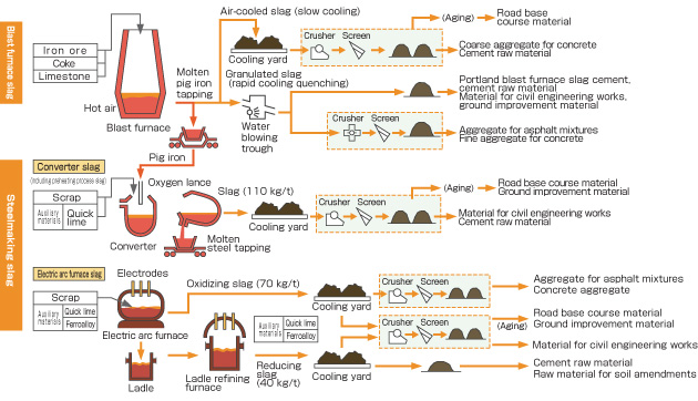 这些组件存在于自然界中的地方,如地壳,天然岩石和矿物质的化学成分相似,普通硅酸盐水泥。钢铁渣的形状和物理特性,类似普通的碎石和沙子,但由于如的化学成分及冷却过程的差异,它是可能的,以提供不同类型的具有独特性能的各种各样的渣。例如,也有一些类型的渣,变硬碱刺激发生时。许多应用程序利用的物理和化学特性的渣已开发和正在投入使用在广泛的领域。